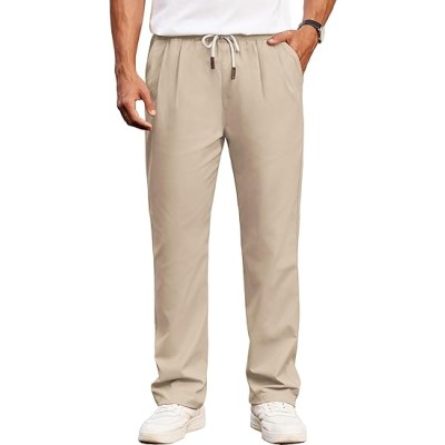 Men's Casual Chino Pants Relaxed Fit Drawstring Elastic Waist Lightweight Pant Twill Pleated Trousers