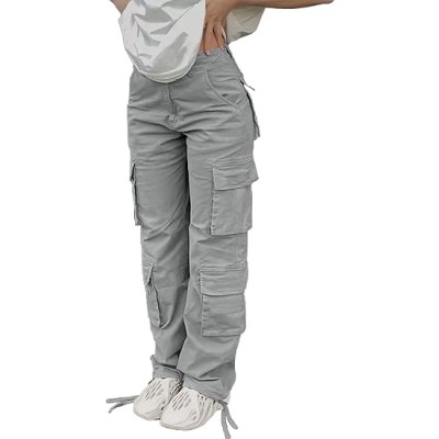 Cargo Pants for Women High Waisted Casual Pants Baggy Y2k Straight Wide Leg Pants with Pockets Streetwear