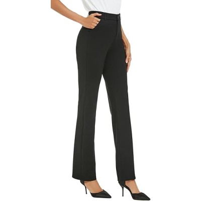 Women's Stretchy Straight Leg Dress Work Pants Business Office Casual Slacks with Pockets