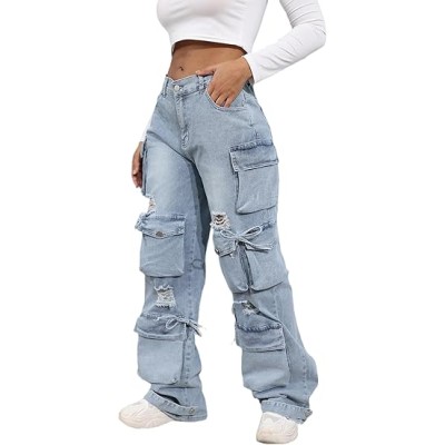 Women’s Baggy Jeans Y2k Cargo Jeans Casual High Waist Baggy Denim Cargo Pants with Pockets Streetwear